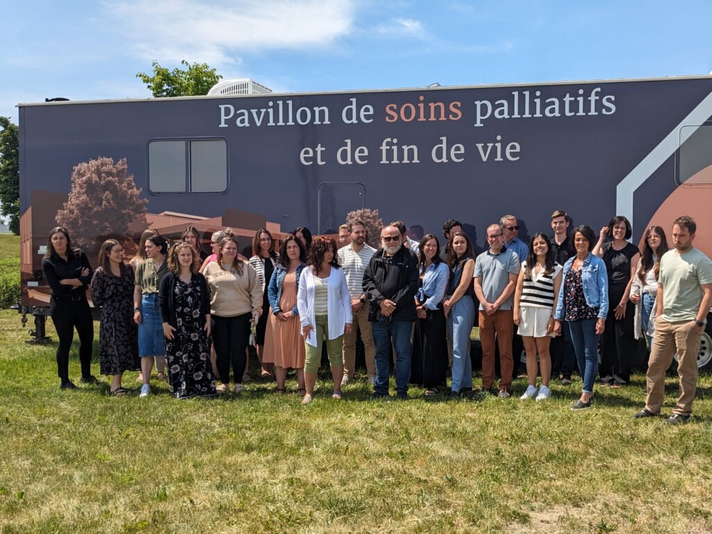 Les employés de Medifice se sont rassemblés autour de la roulotte du PSPFV pour une dernière visite avant qu’elle ne quitte le bureau pour commencer les visites sur la route.